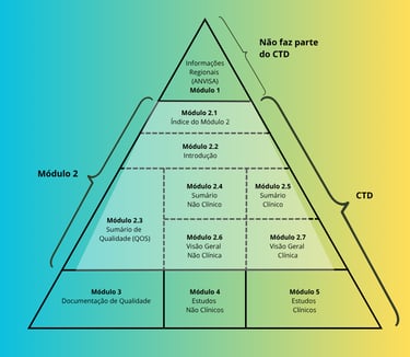 Módulo 3 (Qualidade): apresenta dados analíticos e farmacêuticos, incluindo especificações, métodos de validação e estudos de estabilidade.