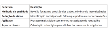 Confiabilidade dos dados: Documentos revisados aumentam a confiança dos avaliadores na precisão dos resultados.