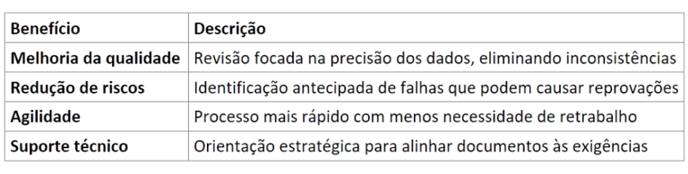 Investir em uma consultoria especializada em análise e revisão técnica proporciona segurança em cada etapa do processo. Profissionais capacitados conseguem identificar falhas ocultas, ajustar a documentação conforme os padrões da agência e otimizar o andamento da submissão.